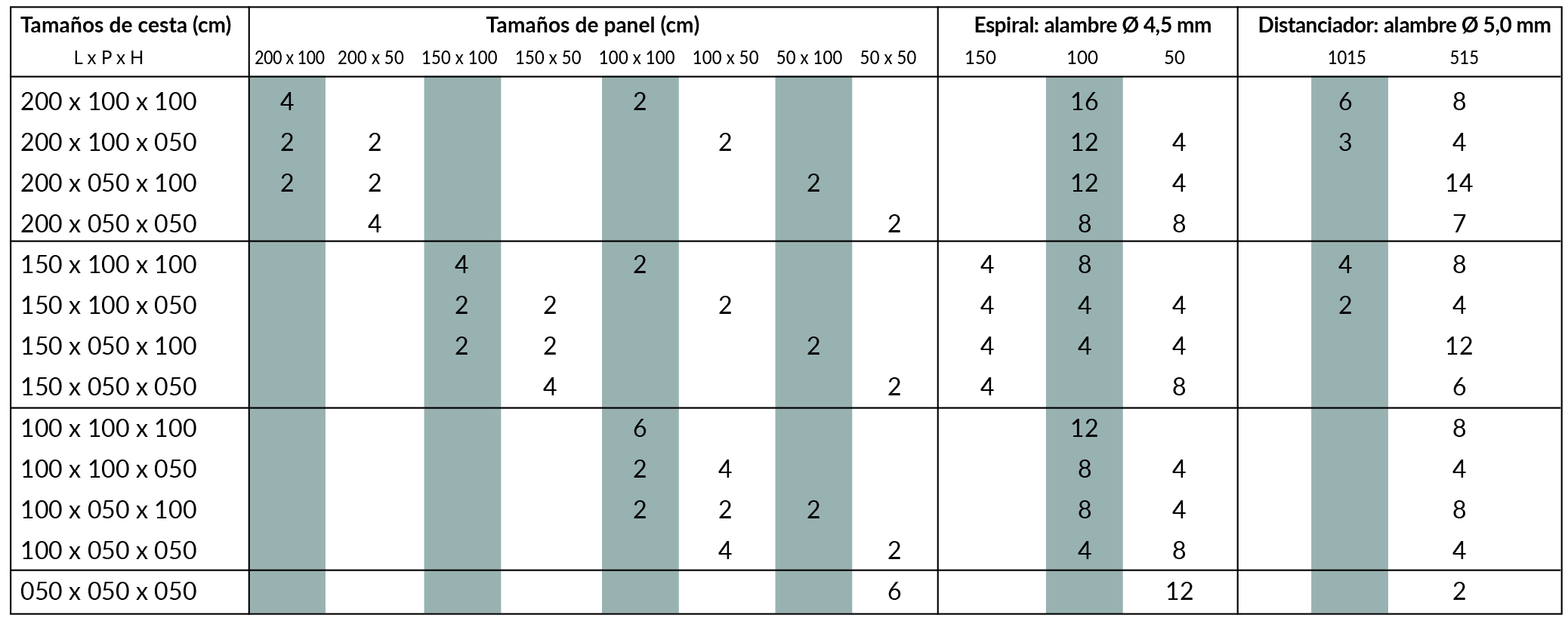- Rejillas de alambre soldadas por puntos y con recubrimiento de zinc y aluminio (95% zinc / 5% aluminio)